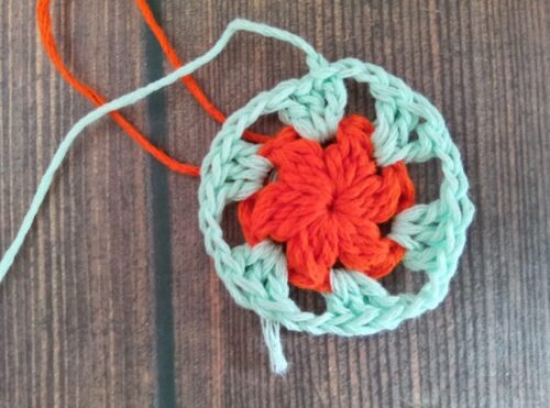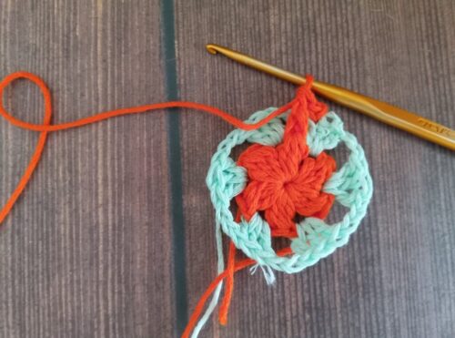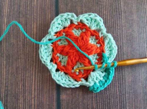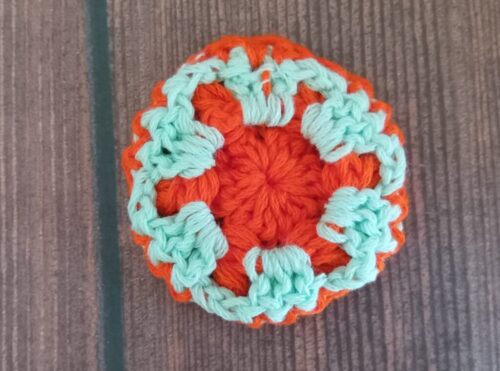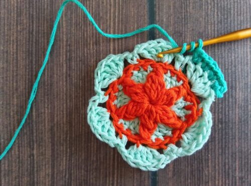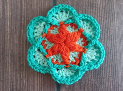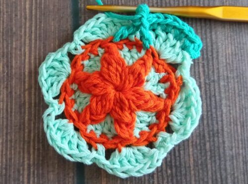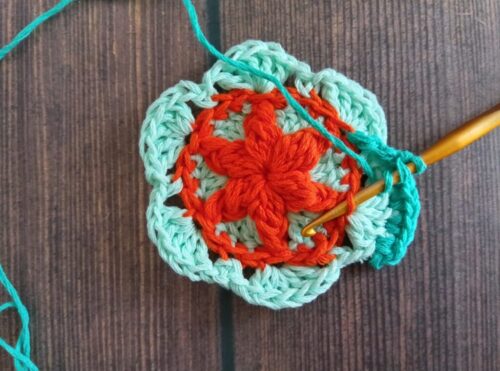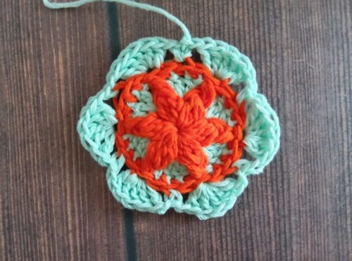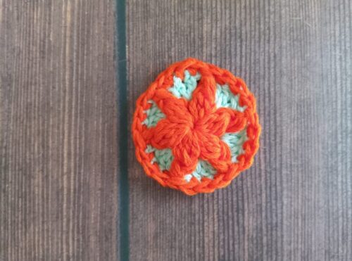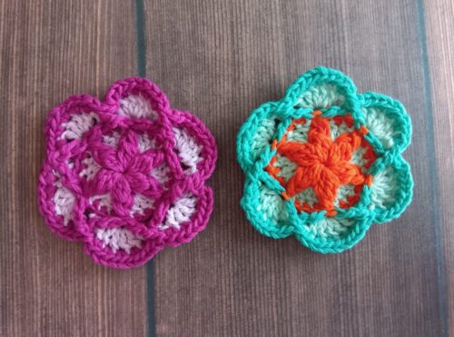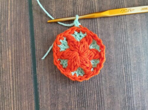 色違いでもう1つ編みました。2色で編んだモチーフは、また印象が変わって面白いです。