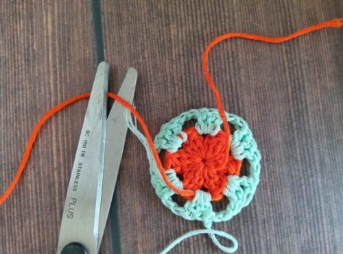 4段めも編み終わりの処理をして糸をカットしてください。